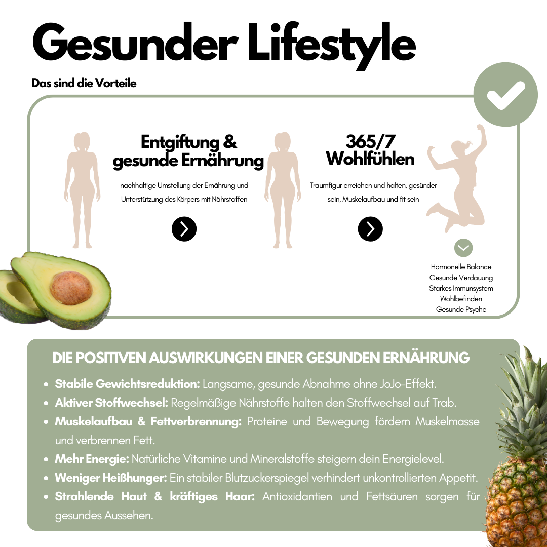 Dazu erhältst du inspirierende Rezepte, einfache Routinen für den Alltag und das komplette 10-Tage-Detox-Programm, mit dem du direkt durchstarten kannst.